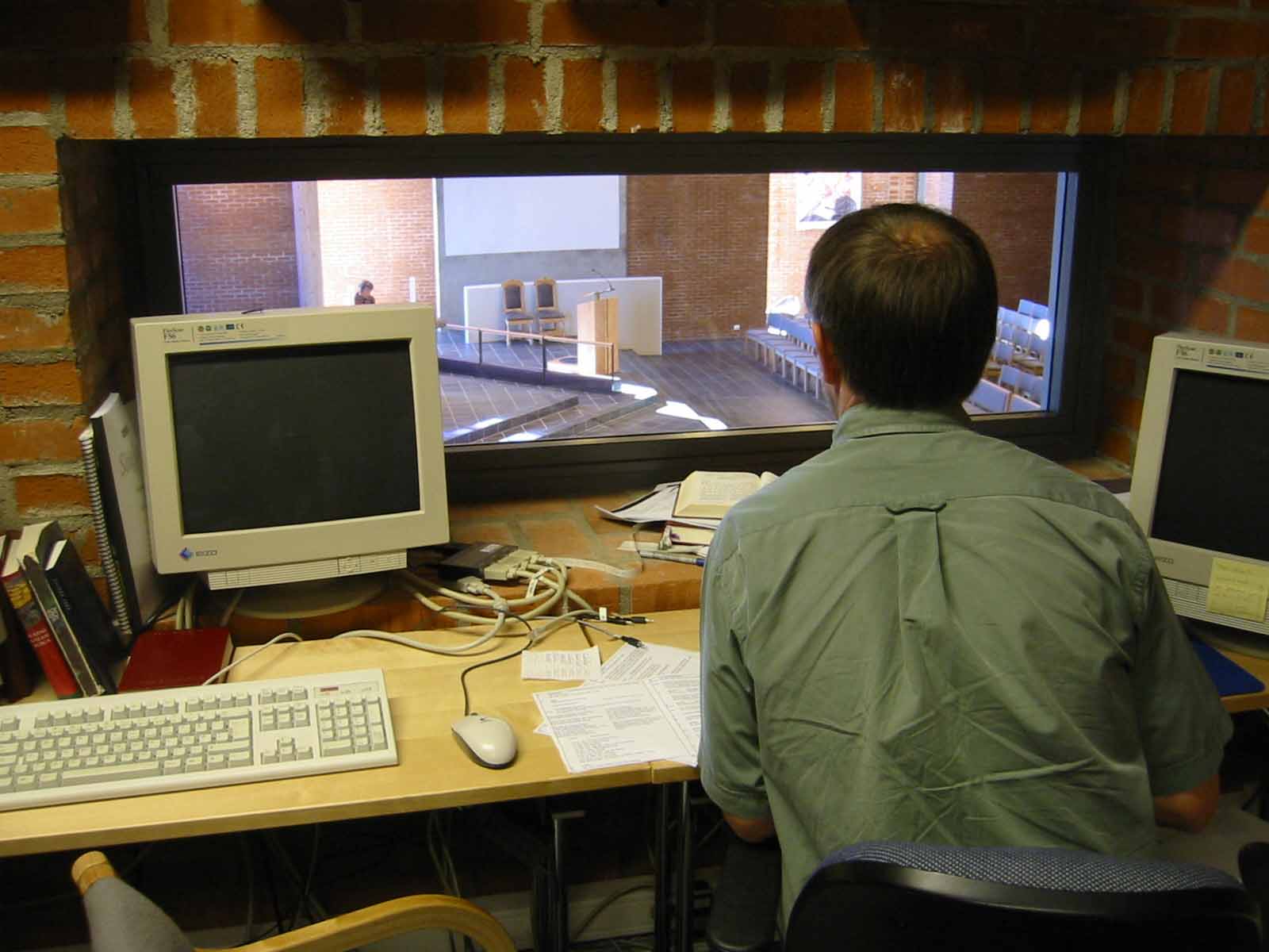 | I Tananger nye kirke er det kontrollrom for styring av tekniskutstyr. Rommet ligger i andre etasje. Herfra er det god oversikt over fremre del av kirkerommet. | ||||||