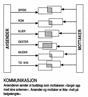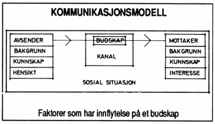 Kommunikasjon er blitt et viktig begrep i vår tid. Hvordan når vi frem med budskapet? Det som blir sagt med ord er noe helt annet enn hva man hører. I kommunikasjonsmodellen (se ovenfor) sendes et budskap gjennom en kanal, f.eks. akustisk ved tale. Taleren har sin erfaringsbakgrunn og kunnskap og har en hensikt med det han vil formidle. Dette skjer i en bestemt sosial situasjon hvor tilhøreren prøver å fange budskapet ut fra sin interesse og kunnskap om emnet. Den informasjonen som vi mottar, vil alltid leses i en sammenheng med andre faktorer.