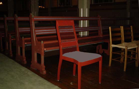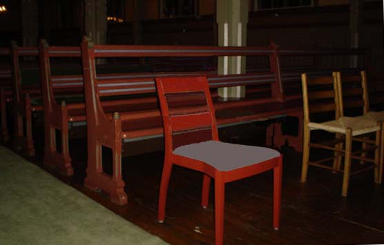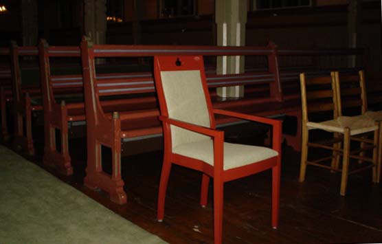 er malt som benkene. Menigheten ønsker nye stoler som passer bedre inn