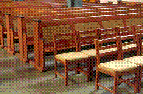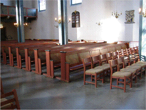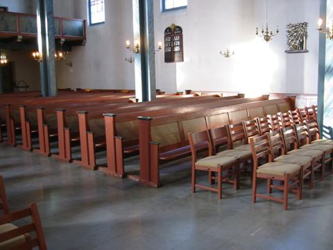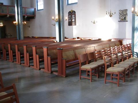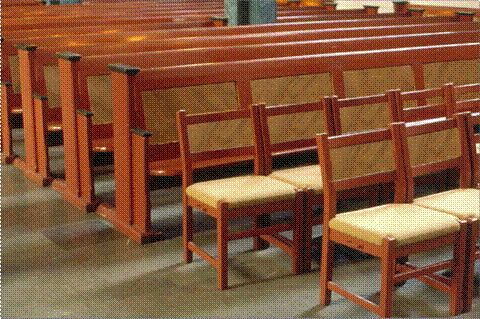 erstattet med stoler fremme i kirkerommet for å gi nødvendig