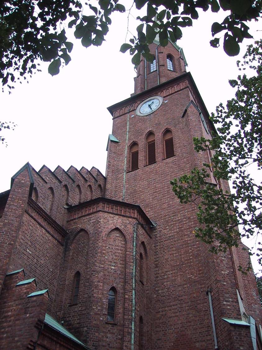 | Skien kirke fra 1894. Kirken er byens kjennetegn med sine to tårn på høyden midt i byen. Det er en flott kirke som nå repareres utvendig. Her må mange ulike stein skiftes. | ||||||||||||