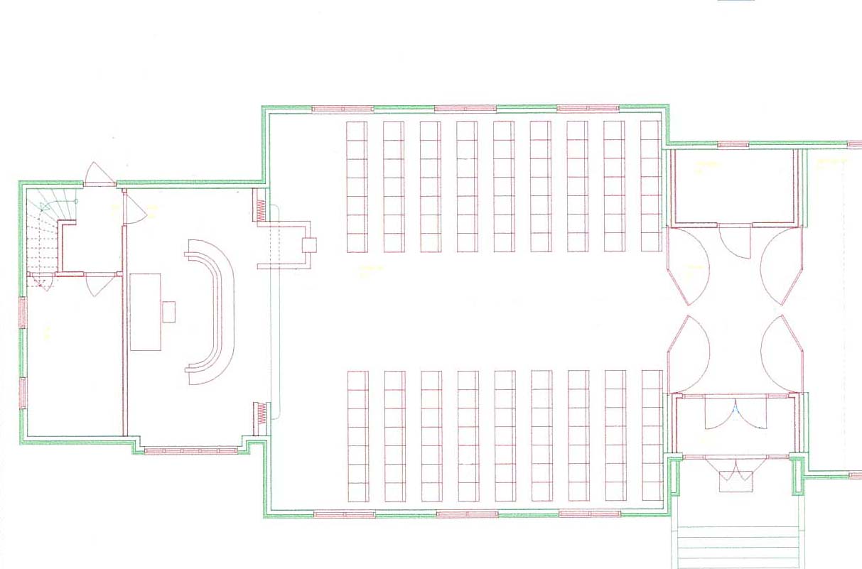 Kirkerommet var laget med foldeveggsdør mellom skip og kor. Med døren